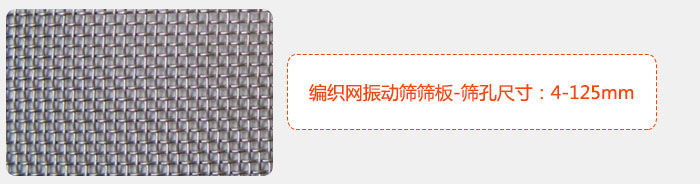 編織網振動篩篩板是用壓有彎扣的金屬絲編織而成的,篩孔形狀為方形或長方形。其優點有:重量輕、開孔率高;而且在篩分過程中,由于金屬絲具有一定的彈性,而作高頻振動,使粘在鋼絲上的細粒物料脫落,從而提高篩分效率。適用于中細粒級物料的篩分。但是它的缺點是使用壽命較短。編織網篩面分粗孔和細孔兩種。粗孔編織篩網的制造材料,有低炭結構鋼絲、彈簧鋼絲和不銹鋼絲等。篩孔尺寸一般為:4-125mm,鋼絲直徑為1.6-12.5mm。細孔編織網一般由低碳鋼、黃銅、錫、錫表銅和不銹鋼等材料,有專門的編織機編織而成。其開孔率為:36%-80%,篩孔尺寸為:0.03-16mm。適用的篩體角度為:18°-30°。