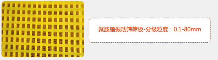聚胺脂振動篩篩板是一種高分子彈性振動篩篩板,它具有優異的耐磨、耐油、耐水解、耐菌、耐老化性能。該振動篩篩板不僅可大幅度減輕設備重量,降低設備成本,延長使用壽命,而且降低噪音,廣泛應用于礦山、冶金、煤碳、焦炭、洗煤、石油、化工等行業振動篩洗選分級作業。聚胺脂振動篩篩板孔的形狀有:梳齒、方孔、長孔、圓孔及條縫式等。物料的分級粒度:0.1-80mm